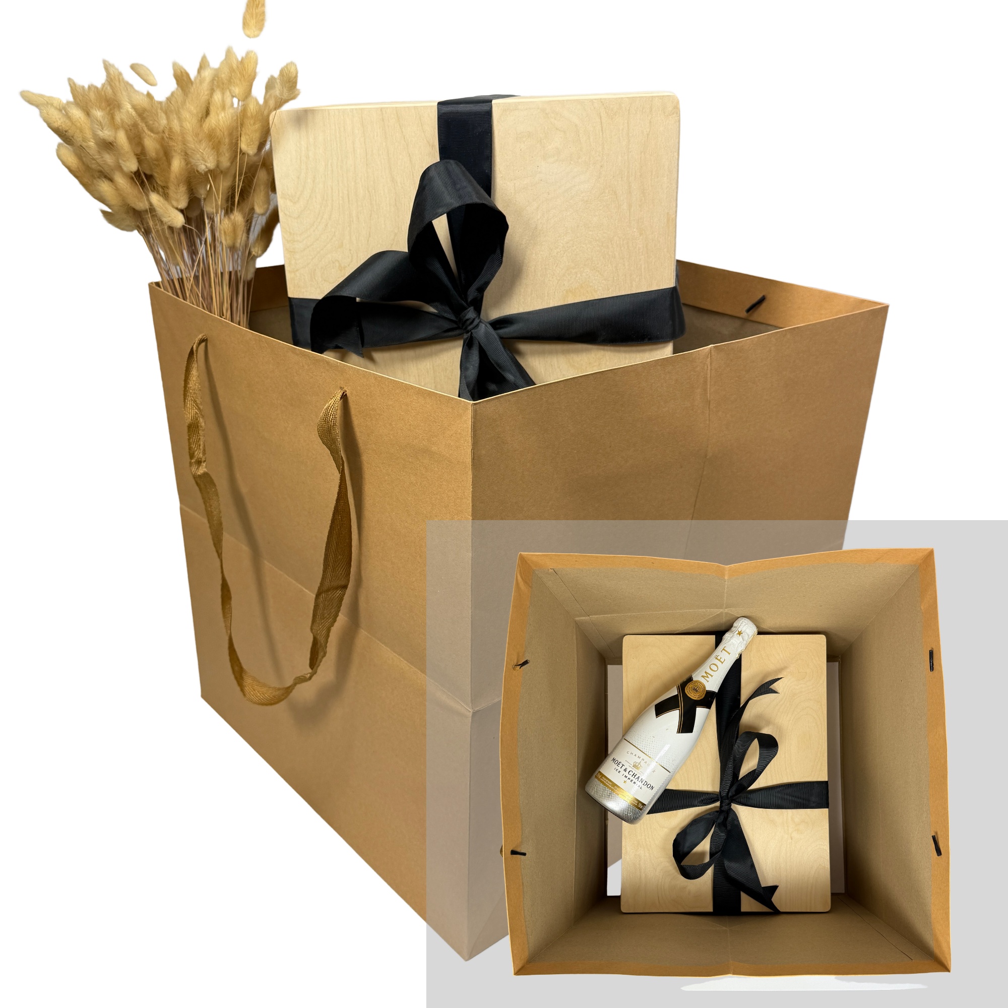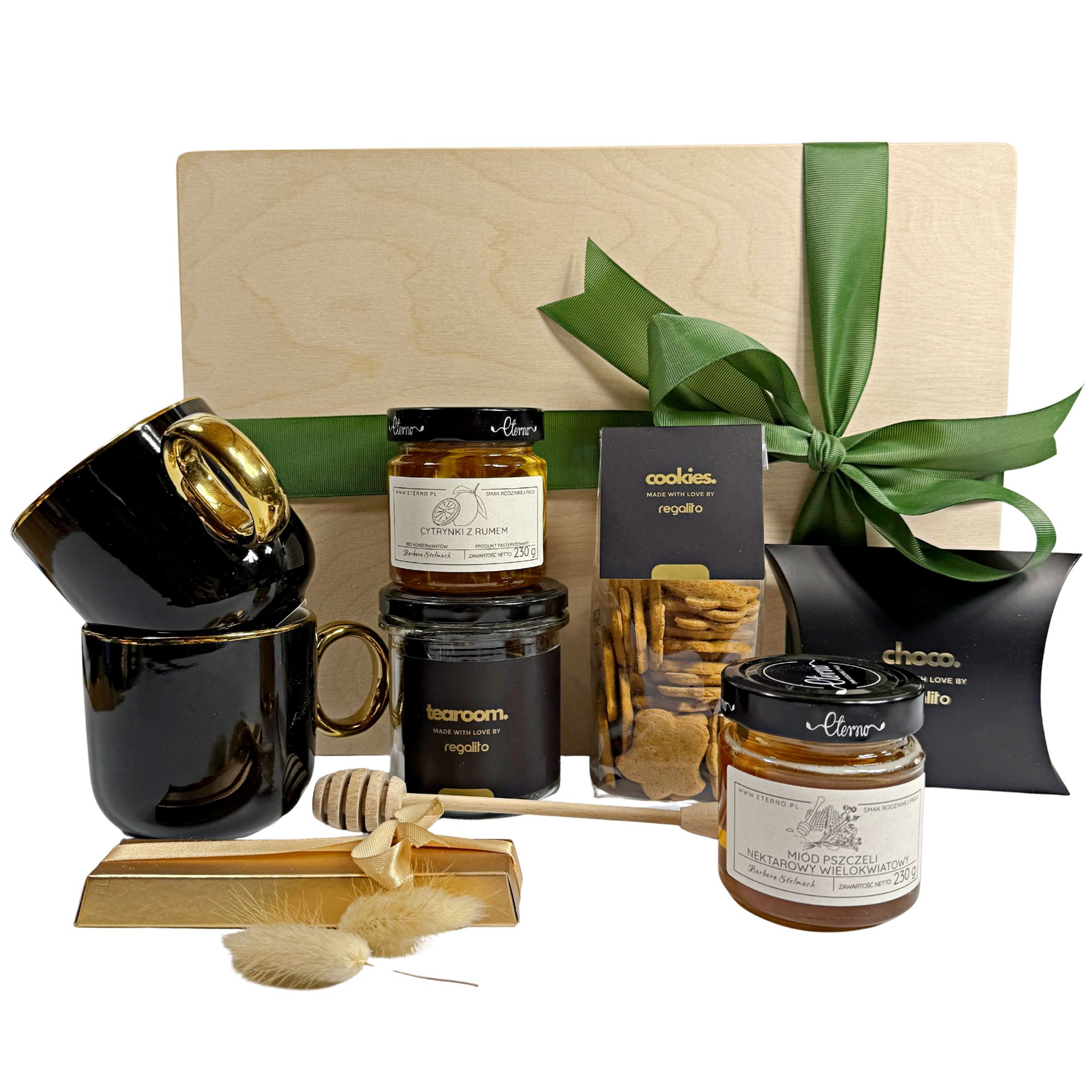 Zestaw produktów w drewnianym pudełku prezentowym z opcją personalizacji: