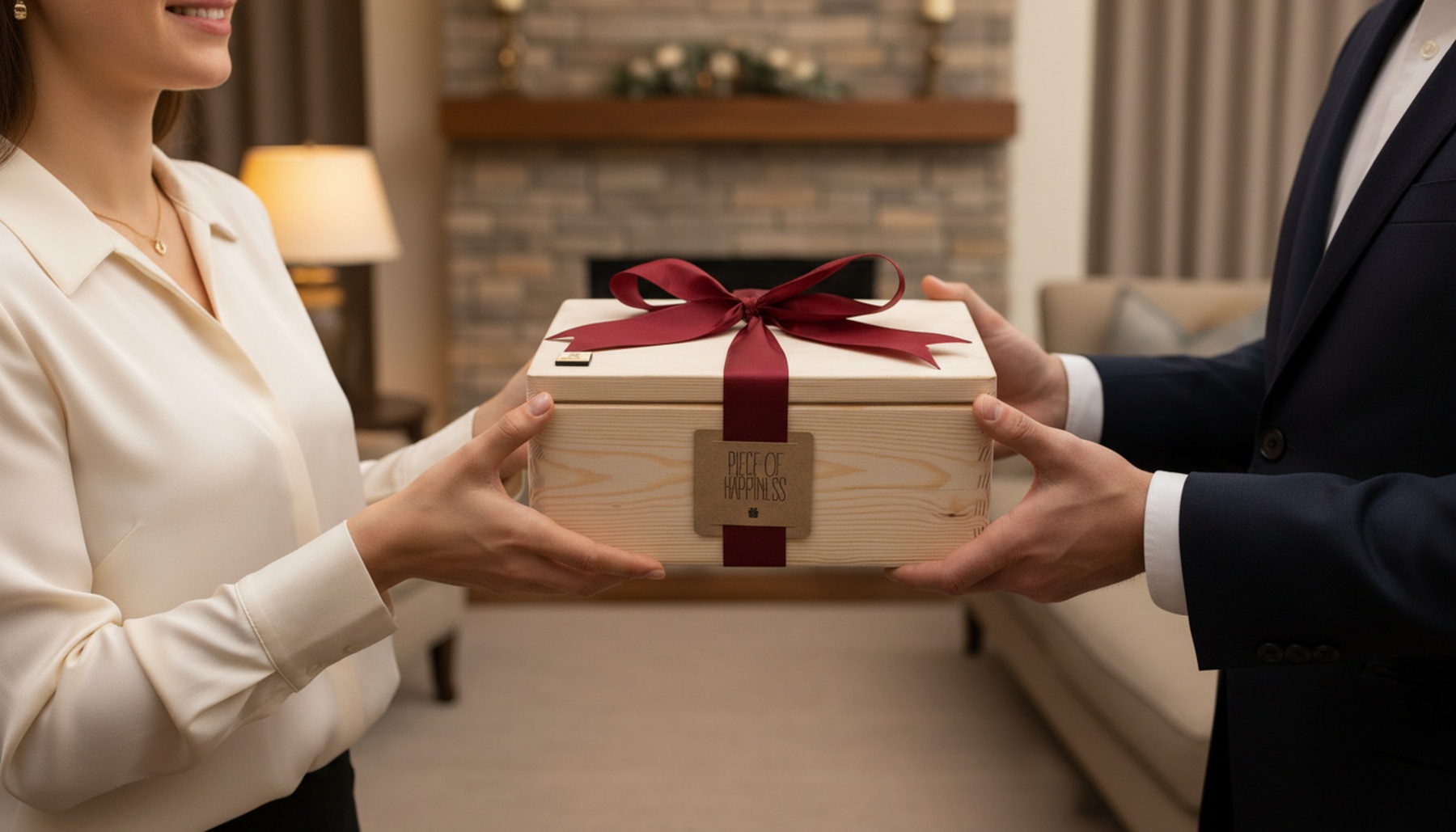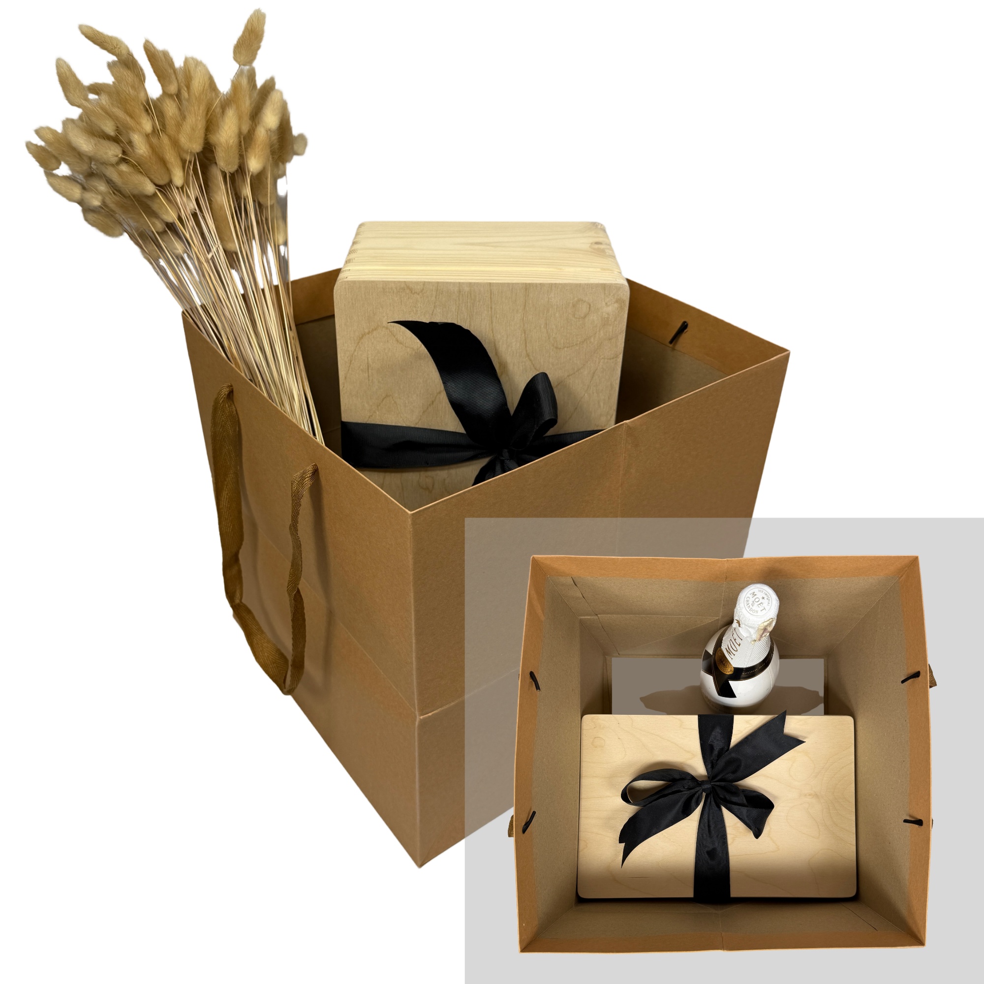 Zestaw produktów w drewnianym pudełku prezentowym z opcją personalizacji: