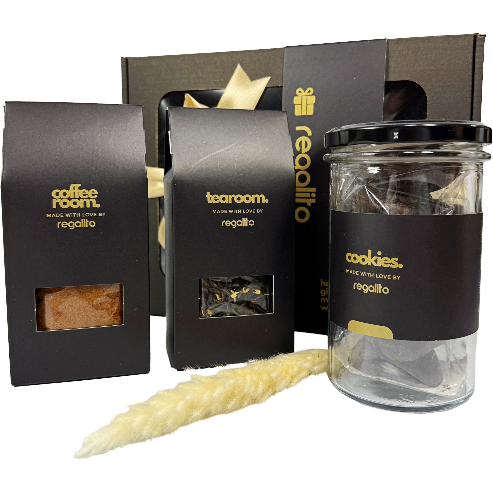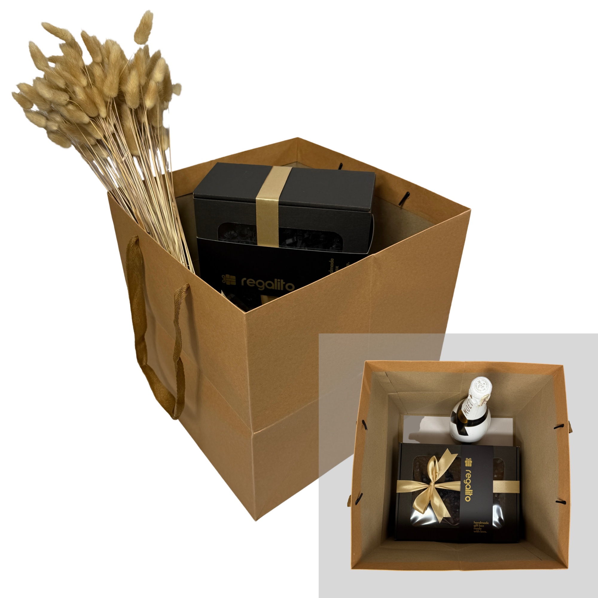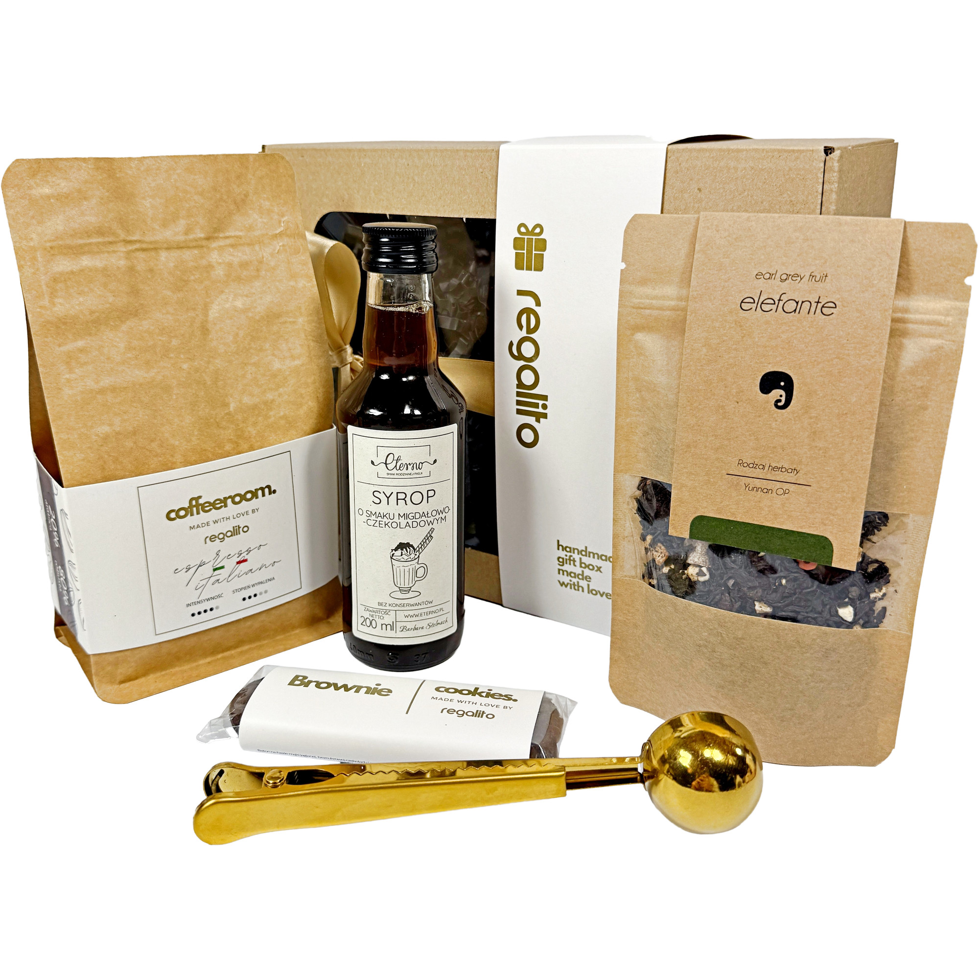Zestaw produktów w eleganckim pudełku prezentowym z obwolutą i wstążką, z opcją personalizacji: