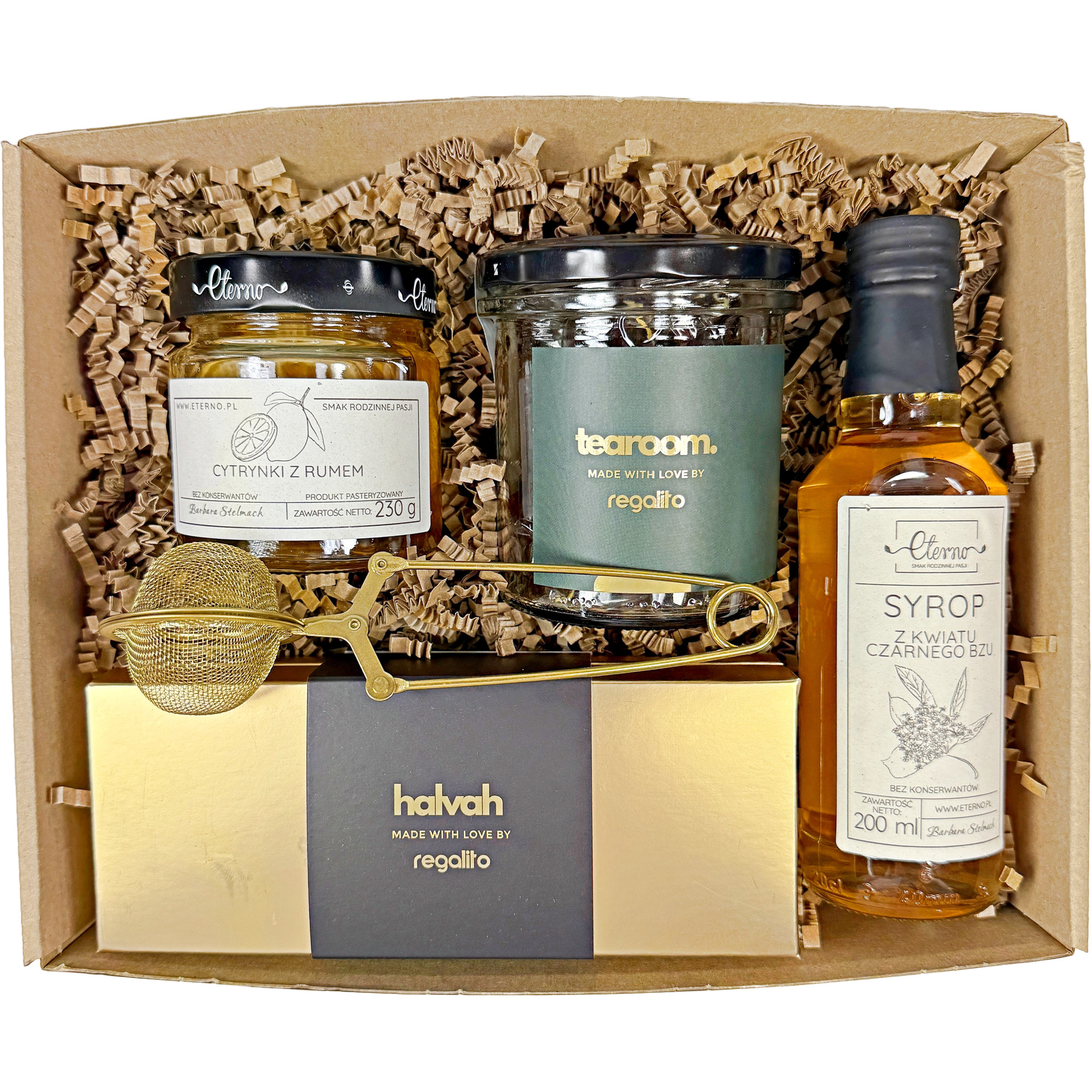 Zestaw produktów w eleganckim pudełku prezentowym z obwolutą i wstążką, z opcją personalizacji: