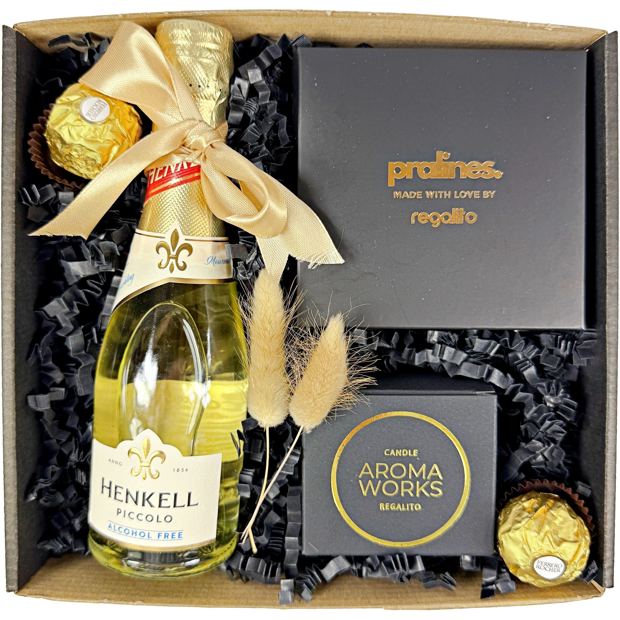 Zestaw produktów w eleganckim pudełku prezentowym z obwolutą i wstążką, z opcją personalizacji: