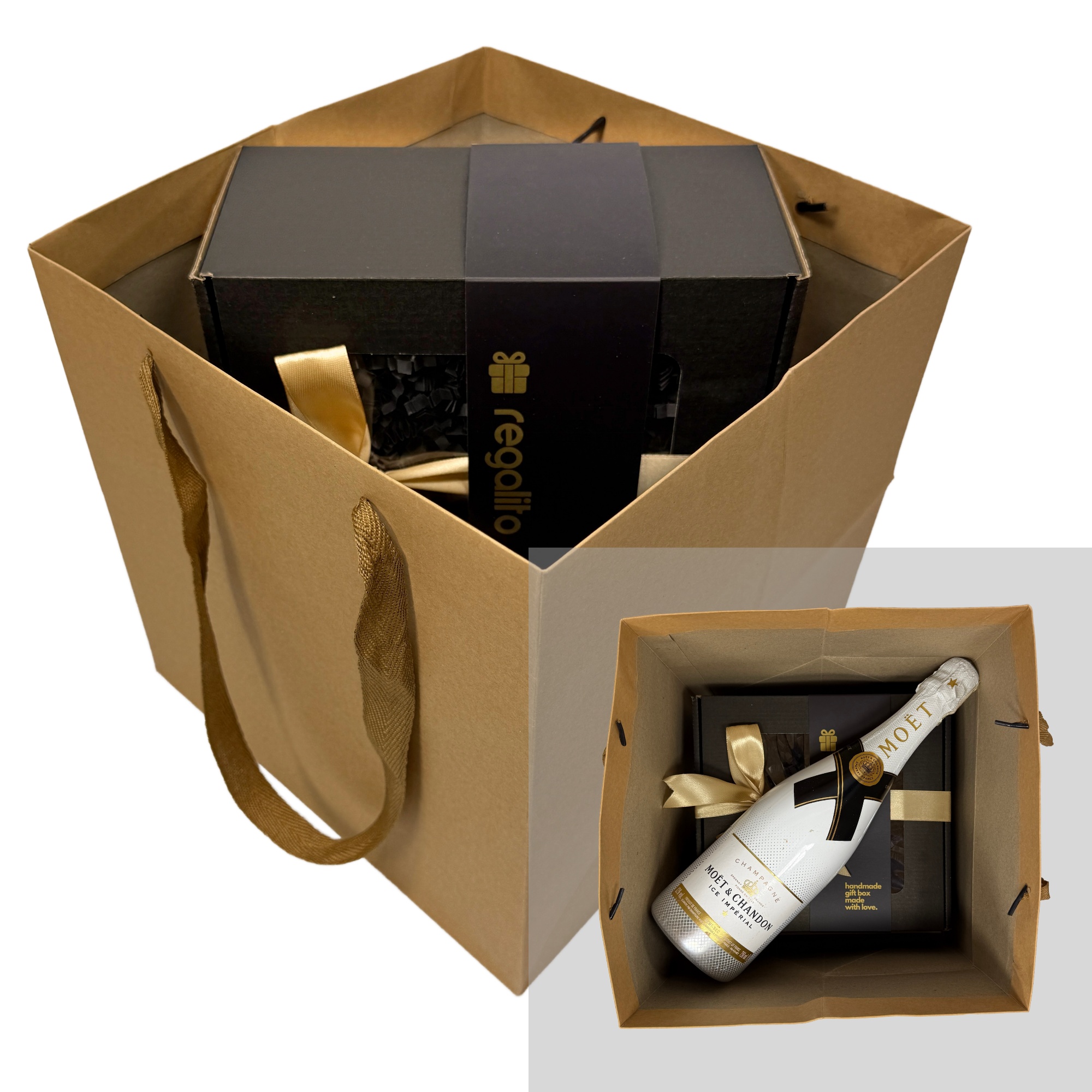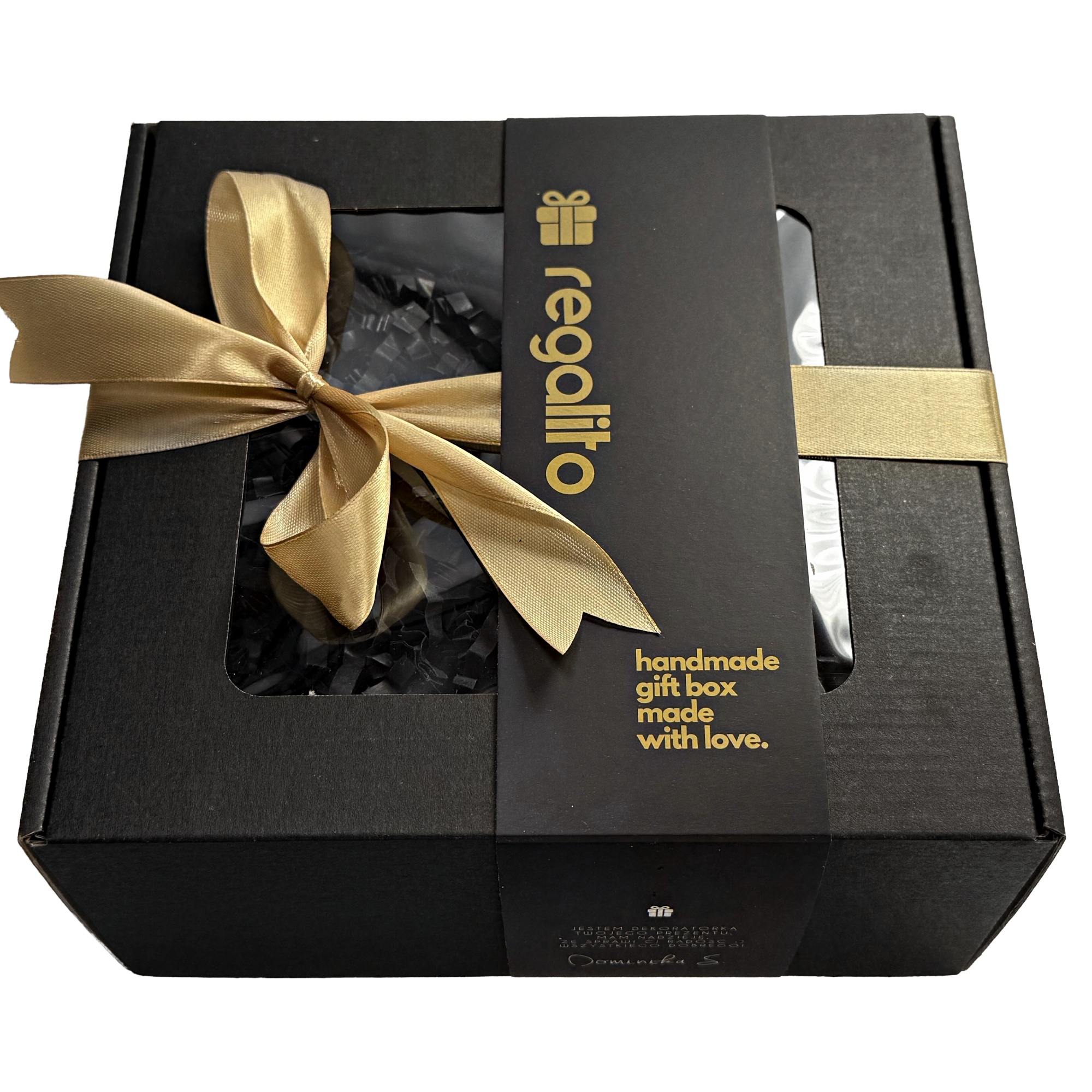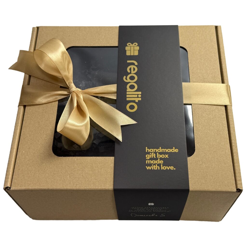 Zestaw produktów w eleganckim pudełku prezentowym z obwolutą i wstążką, z opcją personalizacji: